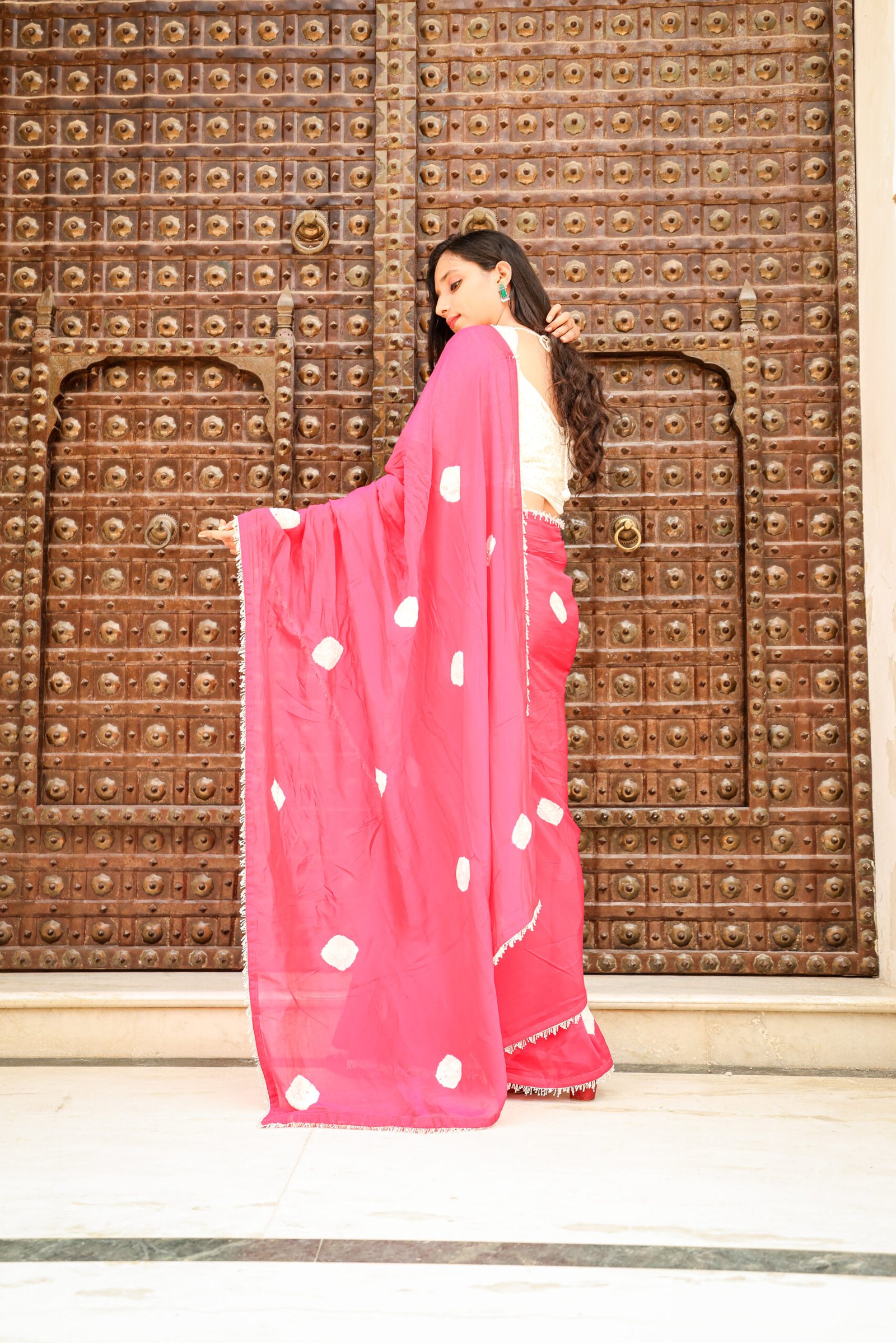 Pink Bandhani Saree